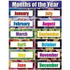 in different languages, sing about them, and talk about them. months are weird, every other month there is 30 days then 31 day except for February which has 28 days 29 on a leap year.